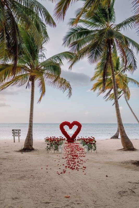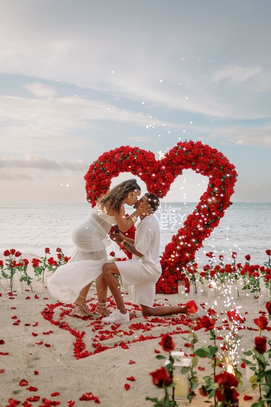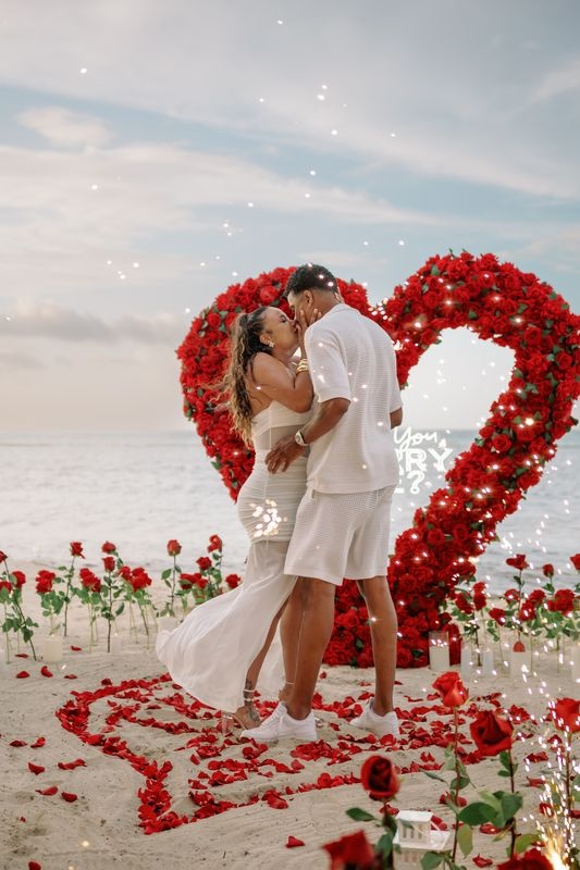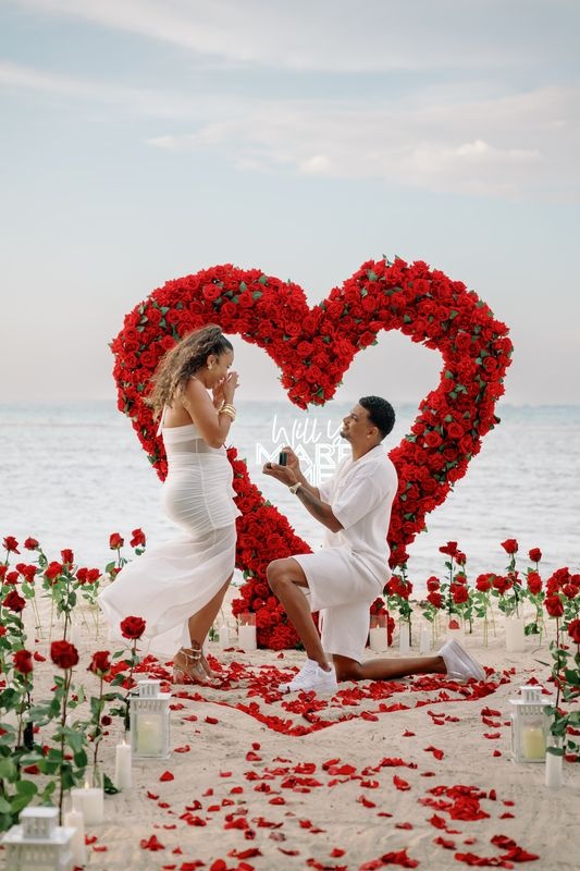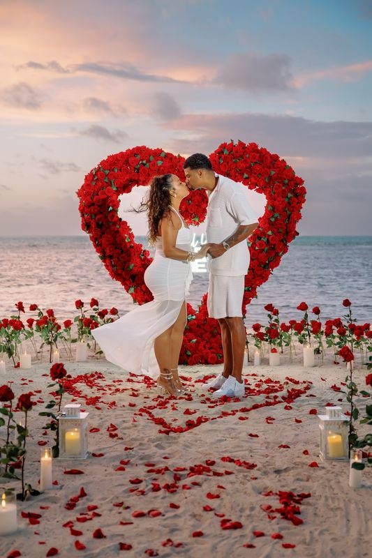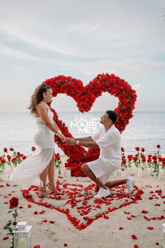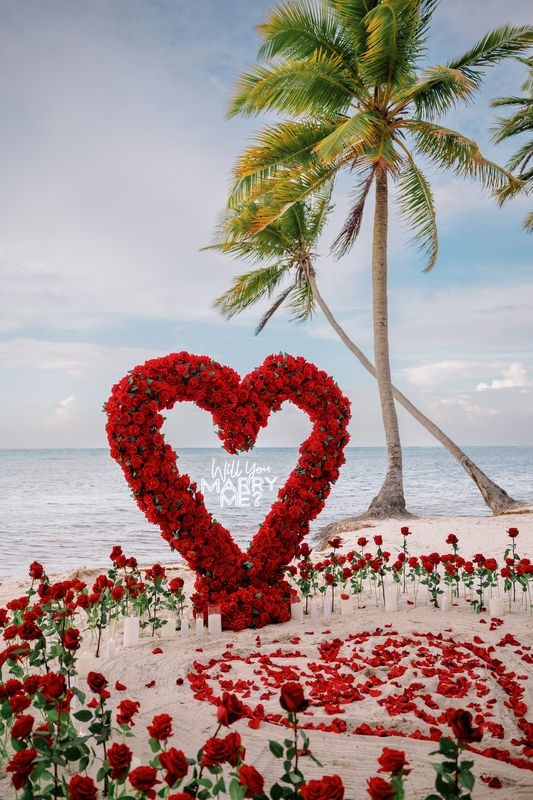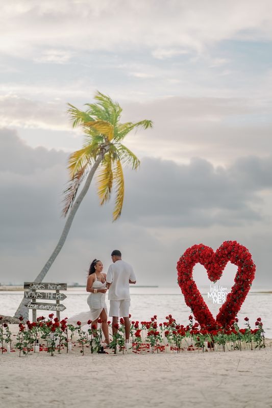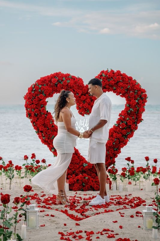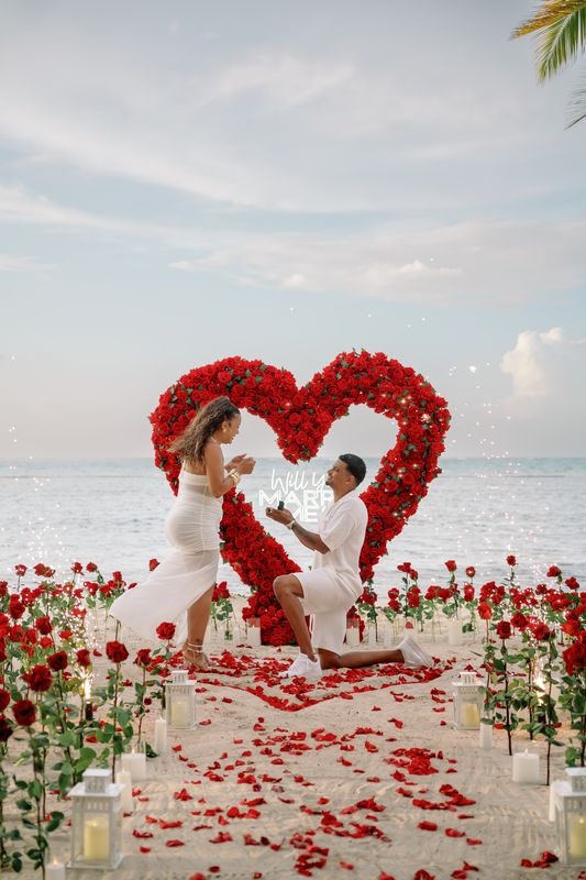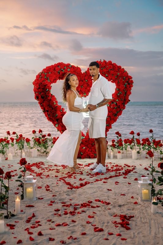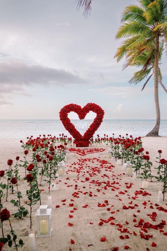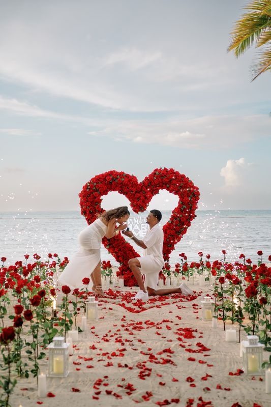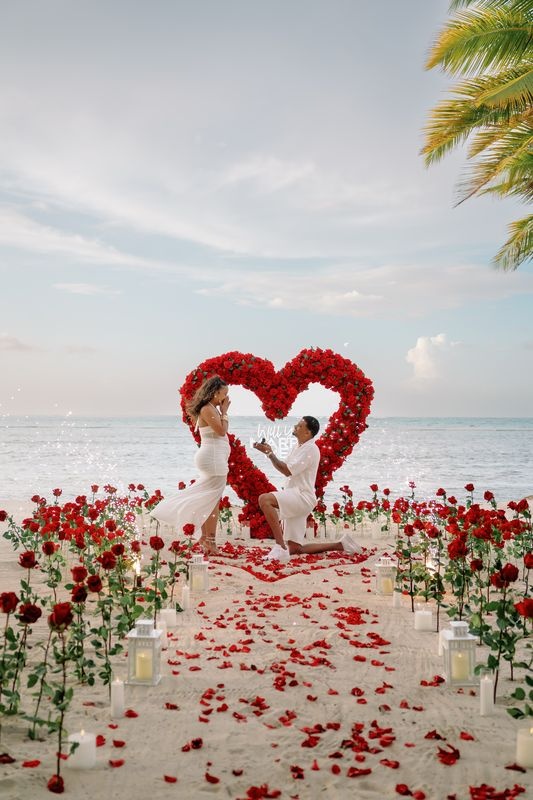 Romantischer Punta Cana Antrag mit Herz aus Rosen