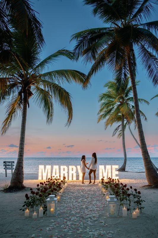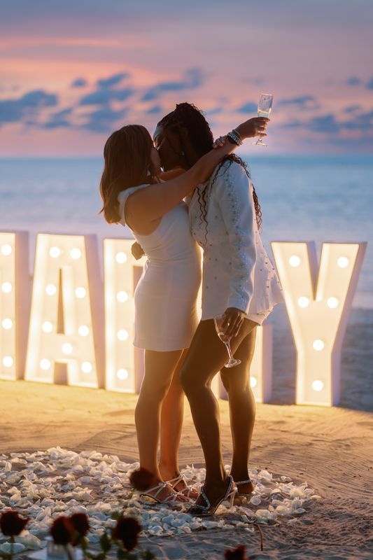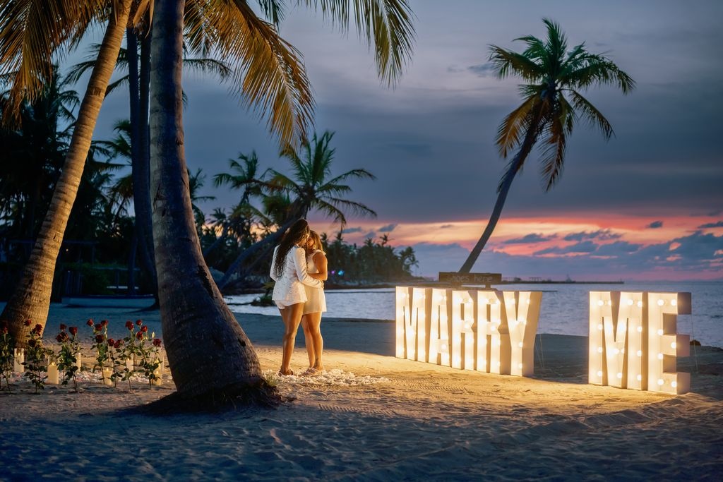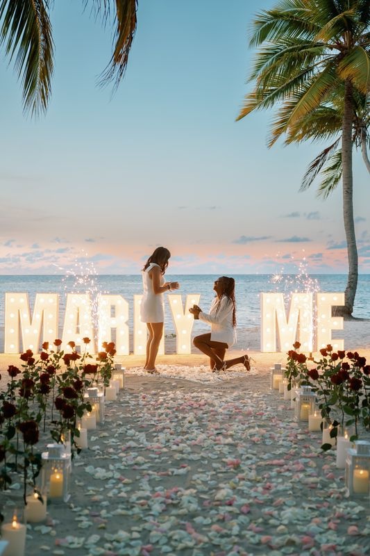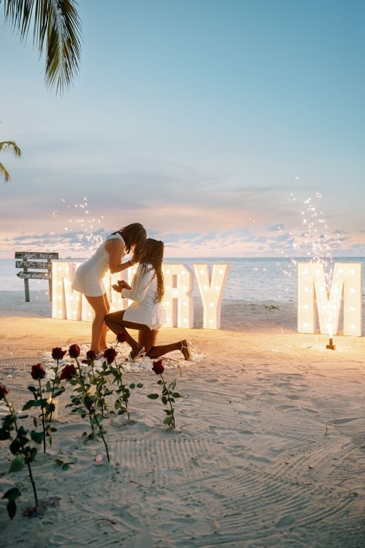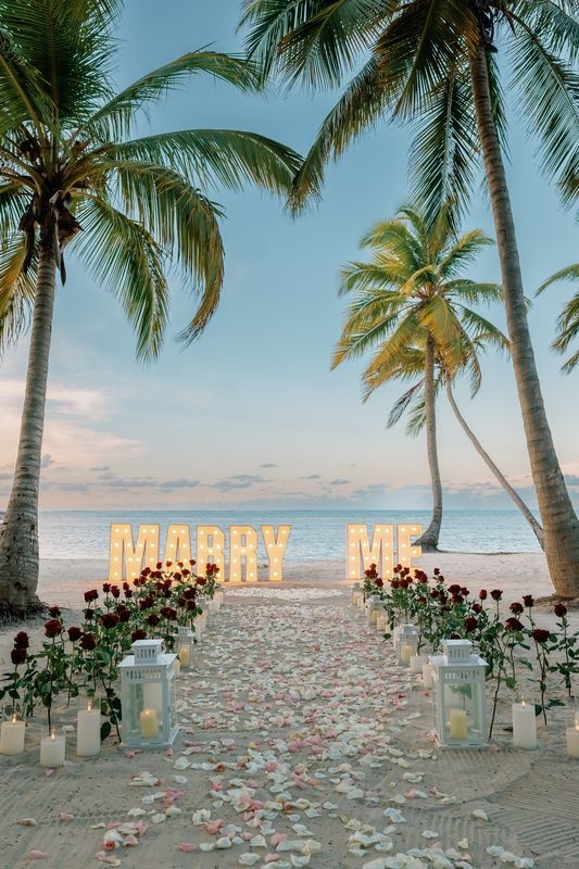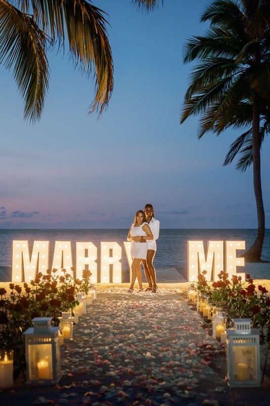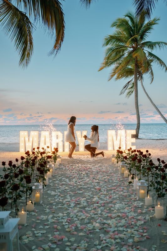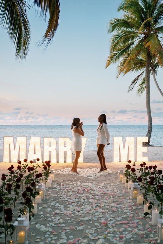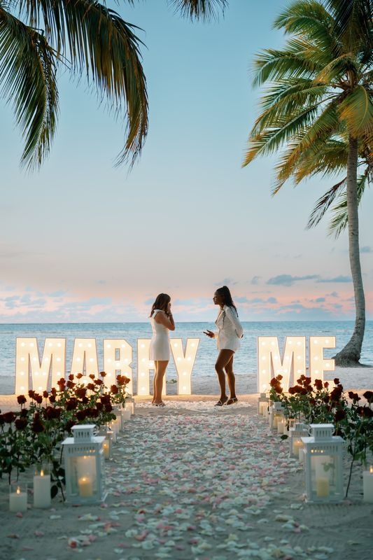Die Planung eines Heiratsantrags für gleichgeschlechtliche Paare in Punta Cana ist eine wunderschöne Möglichkeit, die Liebe zu feiern. An einem privaten Karibikstrand bei Sonnenuntergang überraschte ein Mädchen ihre Partnerin mit einem magischen Setup. Der weiche Sand war mit Rosen dekoriert, und ein romantischer Weg aus Blütenblättern führte zu einem leuchtenden „MARRY ME“-Schild. Ein großes Herz aus Rosenblättern vervollständigte die atemberaubende Szene.