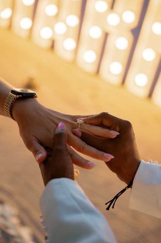 Als sie sich auf ein Knie niederließ, erfüllten Emotionen die Luft. Die Antwort war ein herzliches „Ja“, und in genau diesem Moment erleuchteten funkelnde Feuerwerksfontänen den Strand. Das Paar umarmte sich, stieß mit Champagner an und genoss einen romantischen Spaziergang am Ufer, wodurch unvergessliche Erinnerungen entstanden.