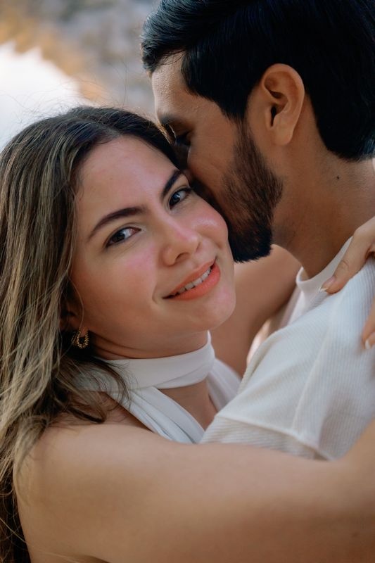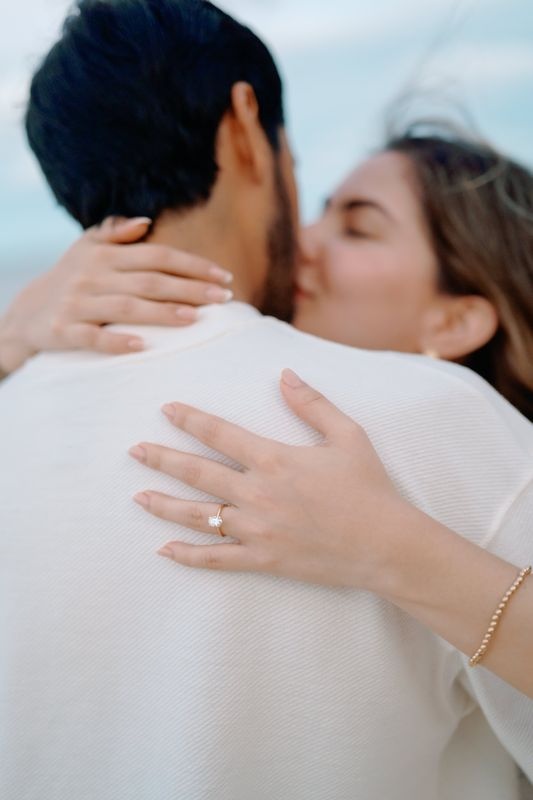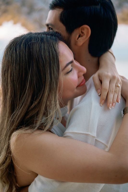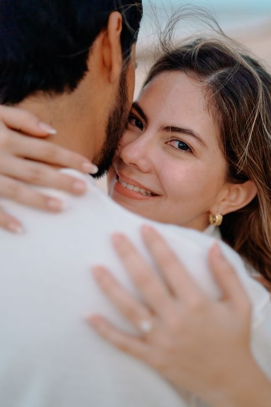 Zunächst ahnte Jenniffer nicht, was sie erwartete. Doch während sie gemeinsam mit Paulo am Strand entlangging, spürte sie, dass etwas Besonderes bevorstand. Als sie das Herz am Meer erreichten, ging Paulo auf ein Knie.