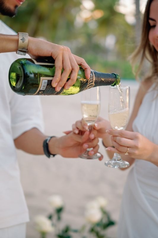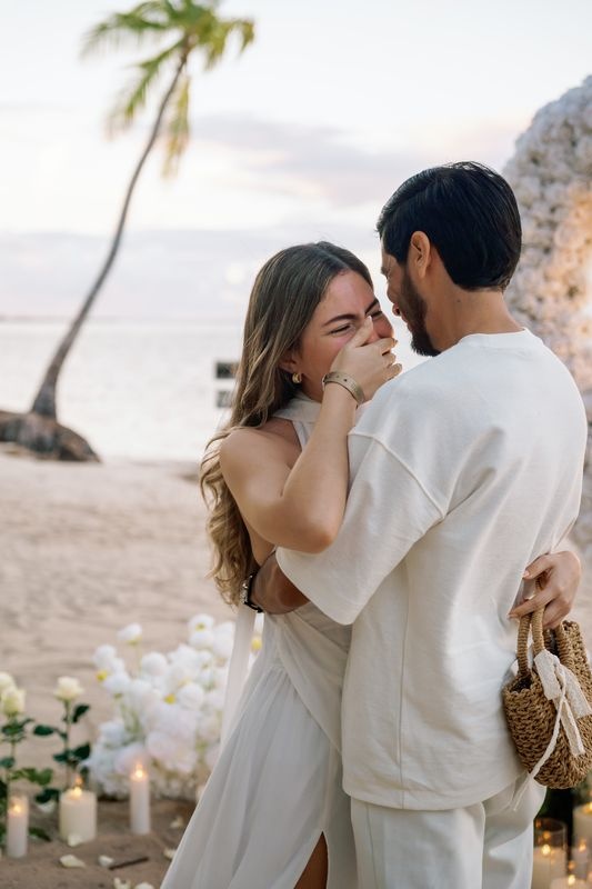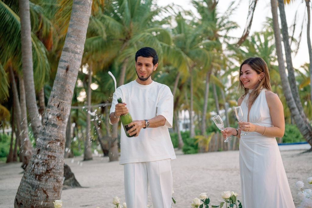Jenniffer reagierte mit Freude, Tränen und purem Glück. Das Paar umarmte sich, lachte und teilte einen unvergesslichen Augenblick. Kurz darauf bereitete Caribbean Wedding eine gut gekühlte Flasche Champagner vor, um den Antrag zu feiern.