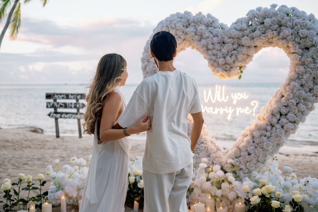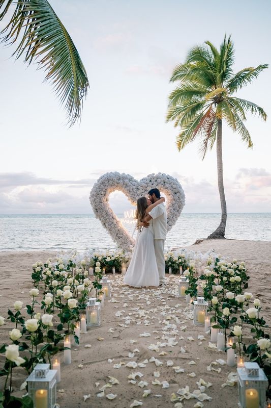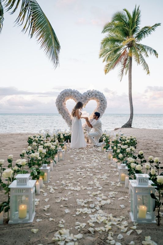 Für Paare, die von einem romantischen und unvergesslichen Heiratsantrag träumen, bleibt ein Strand bei Sonnenuntergang in der Karibik die perfekte Wahl.