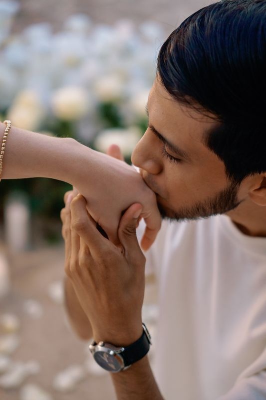 Das Herz symbolisierte Reinheit, Liebe und Verbundenheit. Zusätzlich säumten weiße Rosen und dekorative Laternen beide Seiten des Weges. Mit dem Einbruch des Abends sorgten die Laternen für ein sanftes und romantisches Licht.
