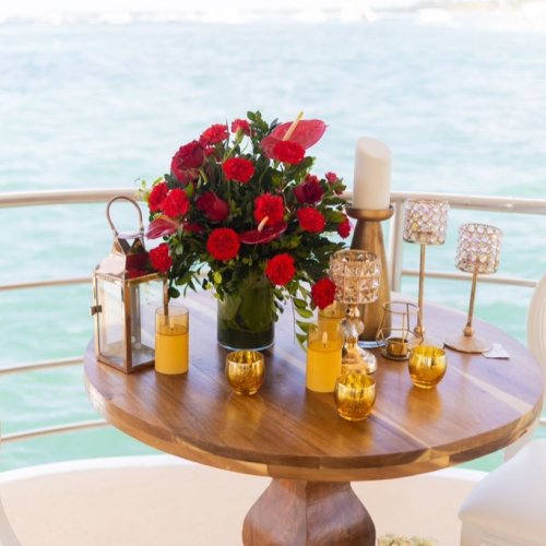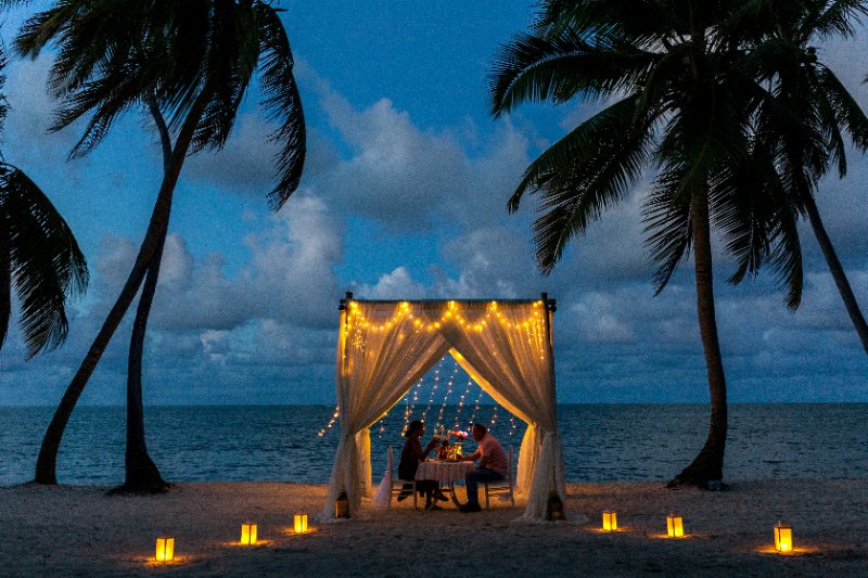 Frische Blumen (12 Rosen oder tropische Blumen) – $80, romantisches komplettes Abendessen oder Mittagessen inkl. Tische und Stühle – $450, Flasche Champagner – $35. Mehr Informationen über das Paket.