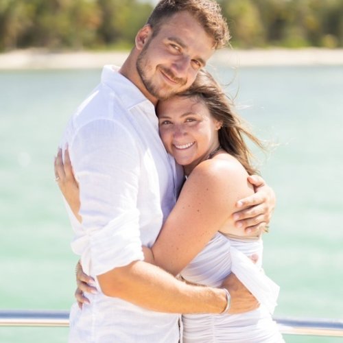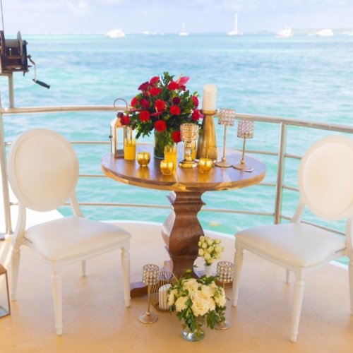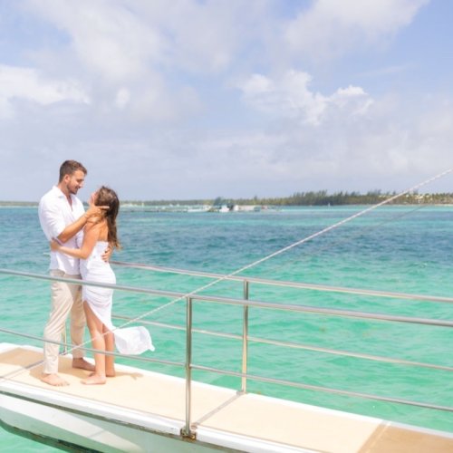 Segeln Sie in die Romantik mit unserem Katamaran Heiratsantrag, eine himmlische Reise auf den azurblauen Gewässern von Punta Cana, Dominikanische Republik. Wenn die Sonne untergeht und den Himmel in warme Farben taucht, steht ein „MARRY ME“-Schild stolz auf dem Deck. Genießen Sie ein Gourmet-Erlebnis mit ausgewählten Speisen und Getränken und stoßen Sie mit gekühltem Champagner auf die Liebe an. Mitten in den rhythmischen Wellen hält ein erfahrener Fotograf jeden intimen Moment fest, sodass dieser nautische Antrag zu einem zeitlosen Tableau Ihrer Liebesgeschichte wird, eingebettet in die offene See.