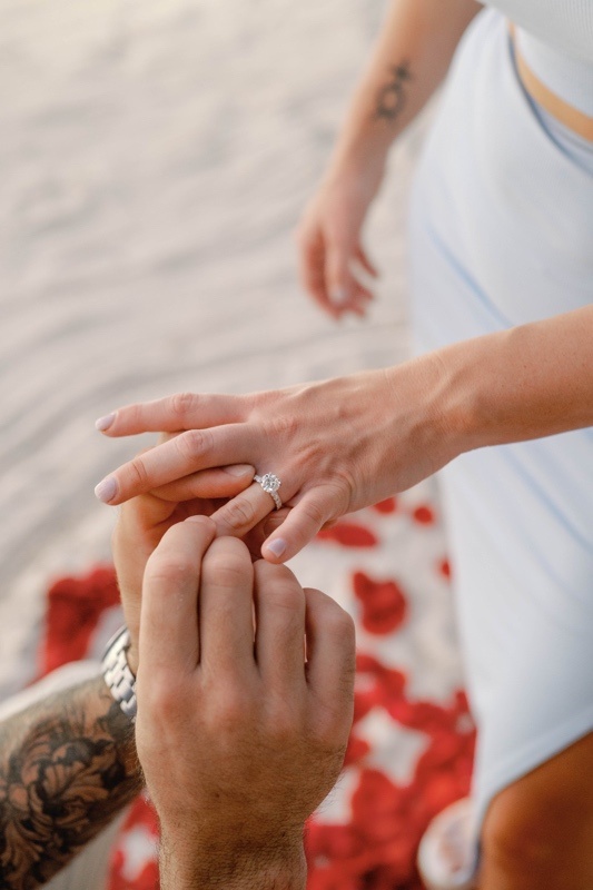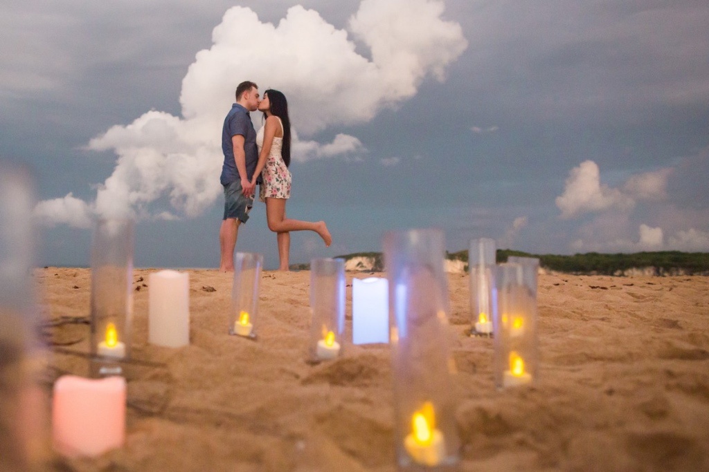 Das Anzünden von Kerzen an einem abgelegenen Strandbereich bietet ein privates und intimes Ambiente für das Paar, um diesen besonderen Moment zu teilen. Kerzen symbolisieren Liebe und Leidenschaft und stellen eine bedeutungsvolle Darstellung der ewigen Verbundenheit des Paares dar.