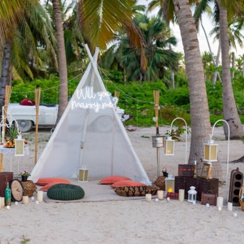 Auch eines der beliebten Marriage Proposal Packages in Punta Cana, Dominikanische Republik. Beginnen Sie eine Reise der Verzauberung mit unserem Romantischen Wigwam Nachtantrag. Unter einem Sternenhimmel, umgeben vom rustikalen Charme eines Wigwams, steht Ihre Liebesgeschichte im Mittelpunkt.