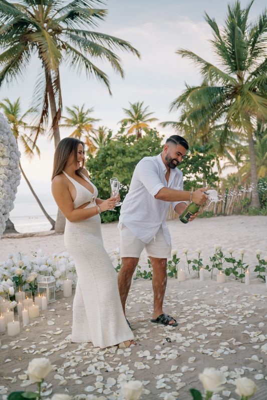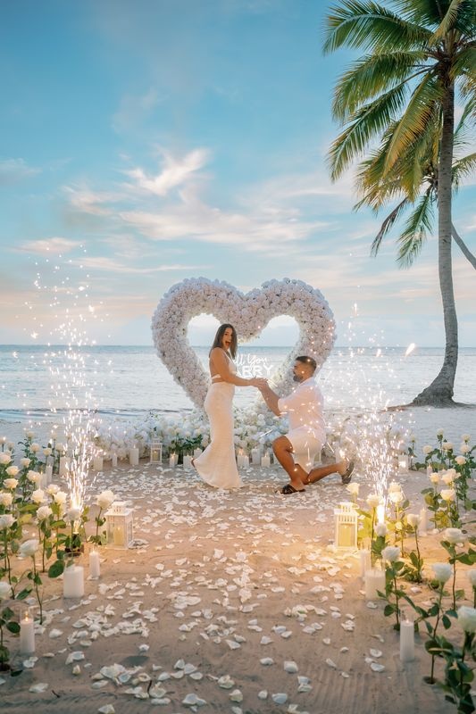 Ein Heiratsantrag in Punta Cana an einem privaten karibischen Strand bei Sonnenuntergang ist der perfekte Beginn für die gemeinsame Zukunft. Unser Team von Caribbean Wedding and Events Agency schafft magische Momente voller Romantik, Überraschung und unvergesslicher Emotionen.