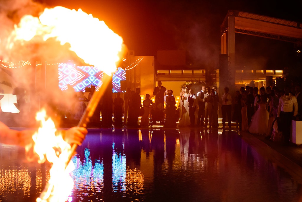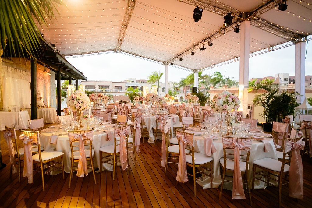 Es war eine der schönsten Hochzeiten des Jahres in der Dominikanischen Republik. Die Vorbereitung des Restaurants begann durch unser Team bereits am Tag vor der Hochzeit – auf der Außenterrasse wurden ein Zelt, zusätzliche Beleuchtung, ein LED-Panel und eine Bühne für die Künstler in der Nähe der Tanzfläche installiert.
