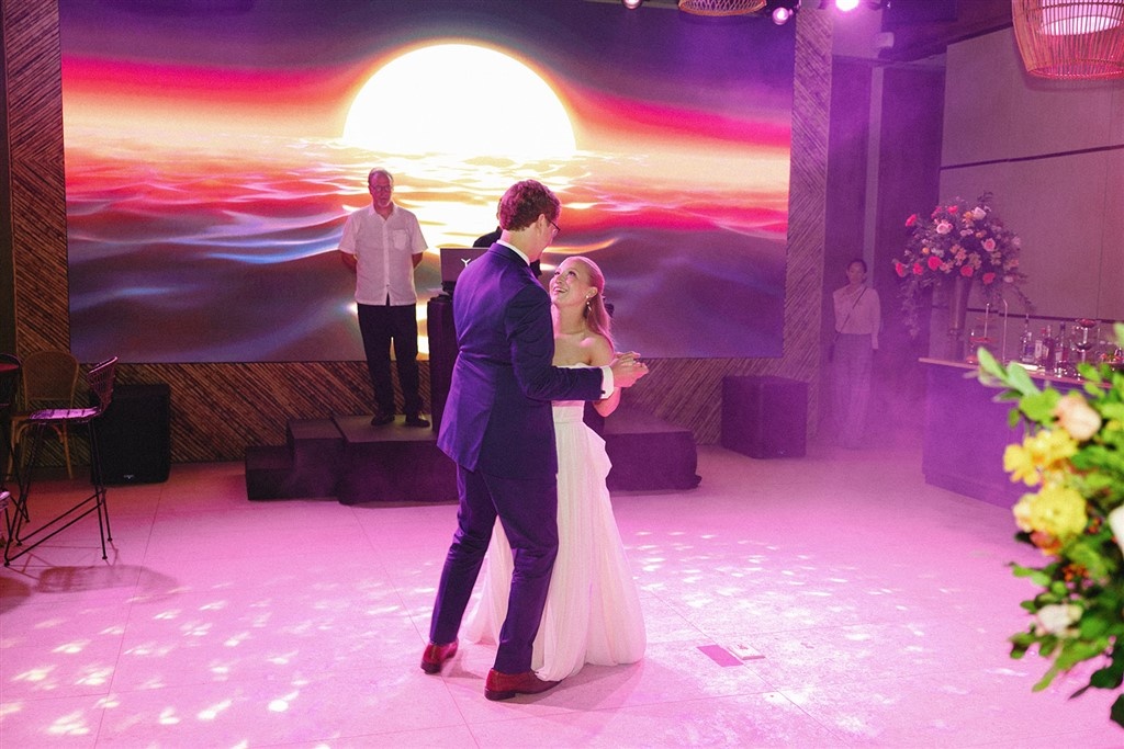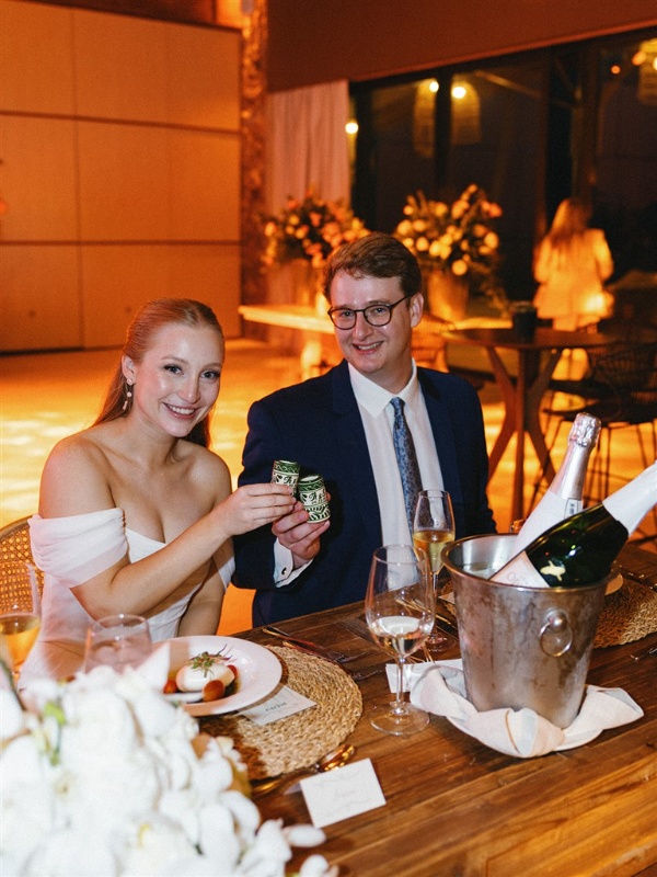 Nach der Zeremonie genossen die Gäste einen eleganten Empfang, der den Stil von Rachel und Sean perfekt widerspiegelte. Der Veranstaltungsort war mit schicker, rustikaler Dekoration geschmückt, die klassische Eleganz mit modernen Akzenten verband. Ein köstliches Menü mit sowohl lokaler als auch internationaler Küche verwöhnte die Gaumen der Gäste, während die beeindruckende Hochzeitstorte als wunderschönes Highlight diente.