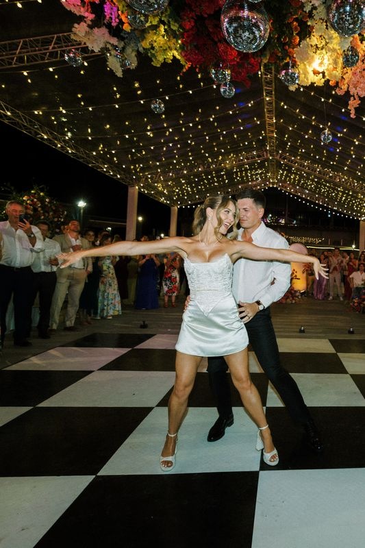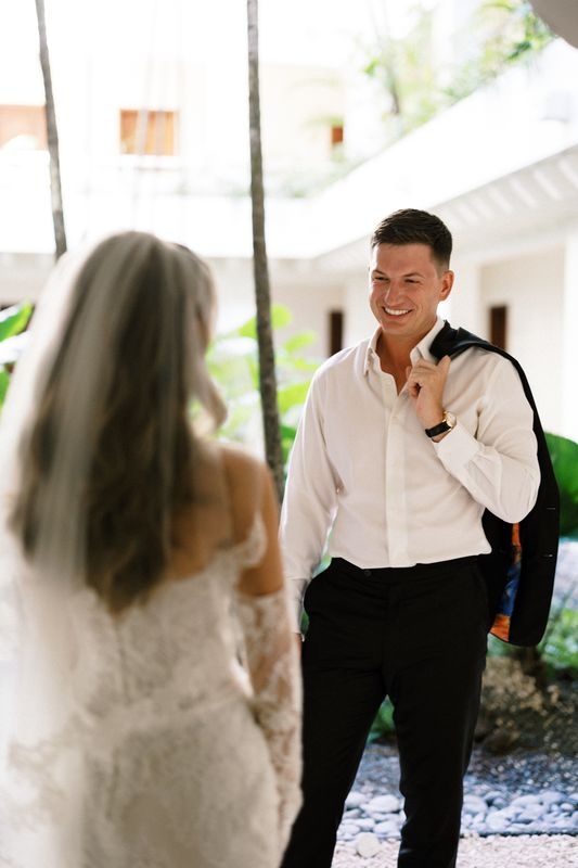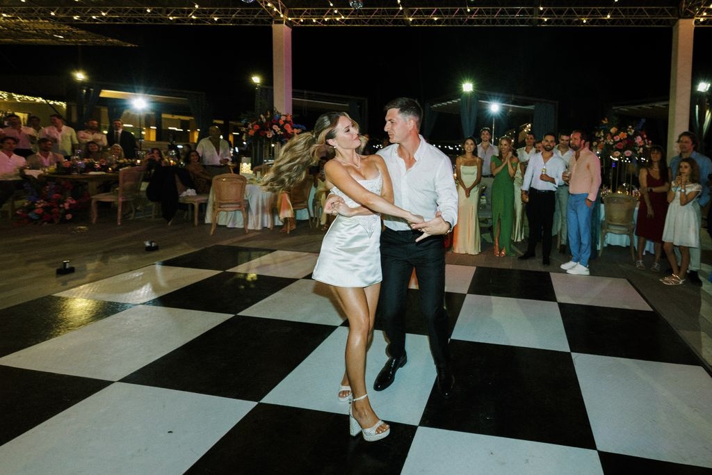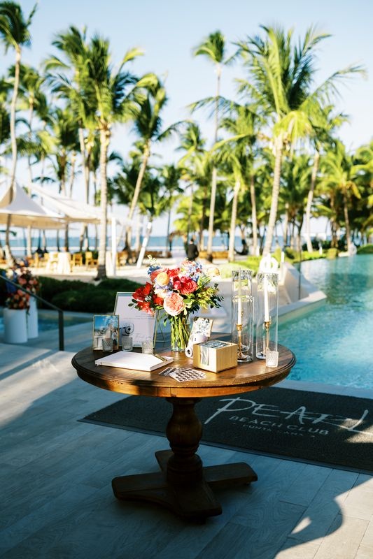 Wir organisierten das Willkommensdinner im Jellyfish Restaurant und schufen eine warme und elegante Atmosphäre. Für die Hochzeitsfeier wählten wir den beeindruckenden Pearl Beach Club. Ashlie, Robert und ihre Gäste übernachteten im Paradisus Palma Real Resort.