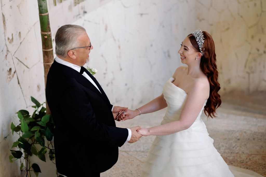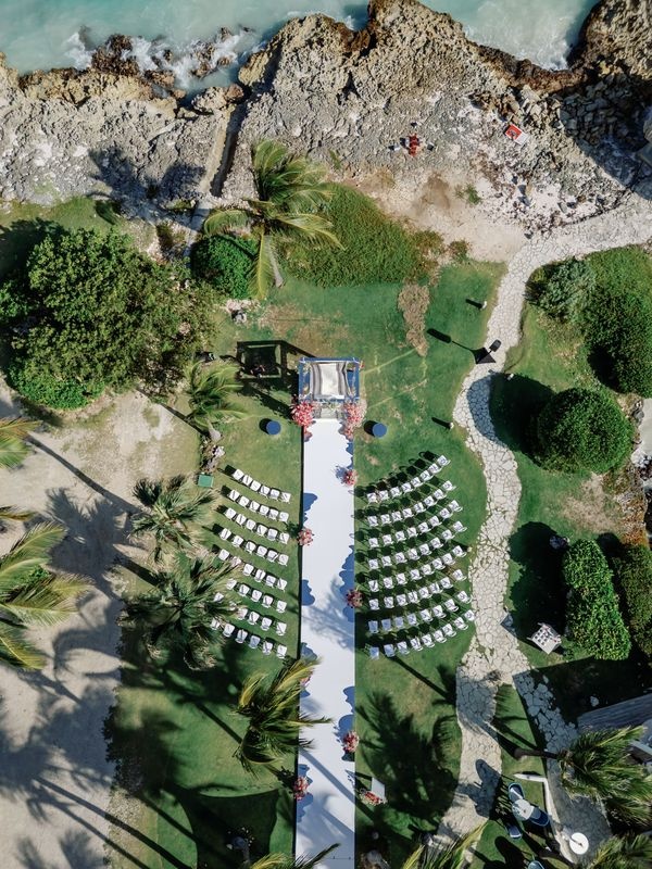 Vor der Zeremonie erlebten Adam und Alexa einen berührenden Moment des First Look. Mit der karibischen Brise, die sanft durch die Palmen wehte, sahen sie sich zum ersten Mal an ihrem Hochzeitstag. Dieser intime und gefühlvolle Augenblick legte den emotionalen Grundton für den gesamten Tag fest.