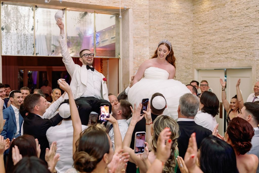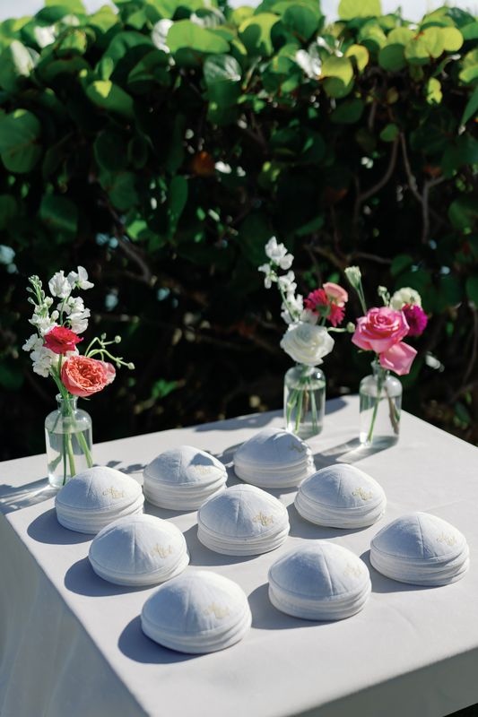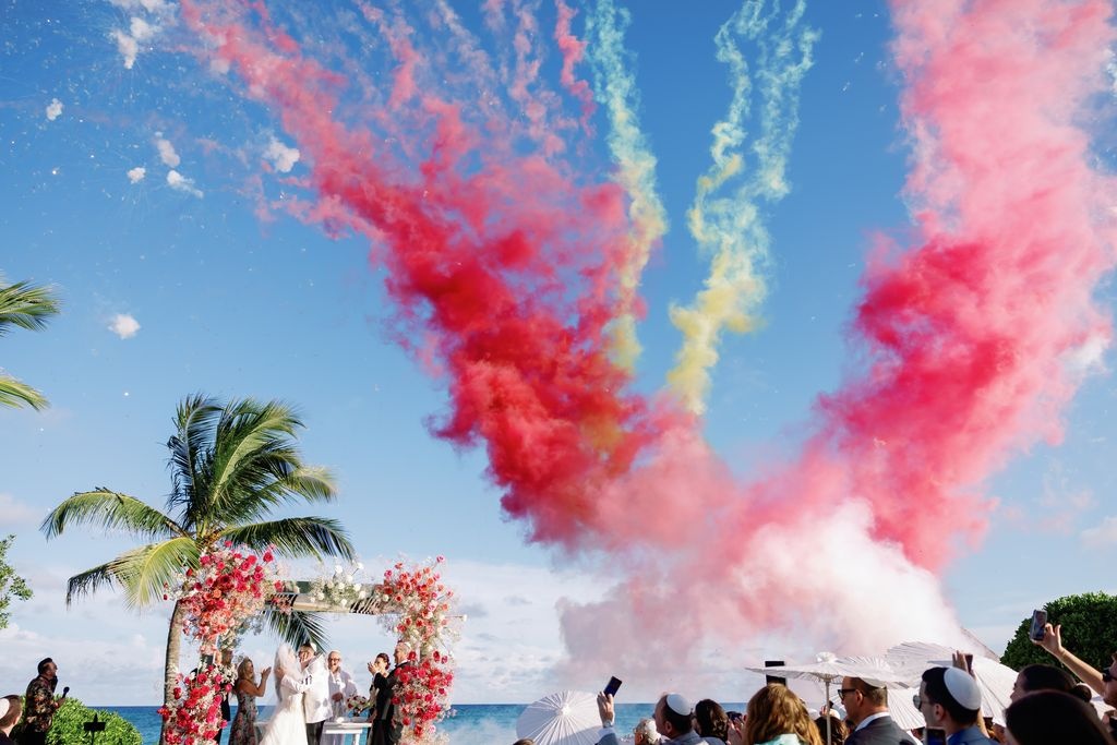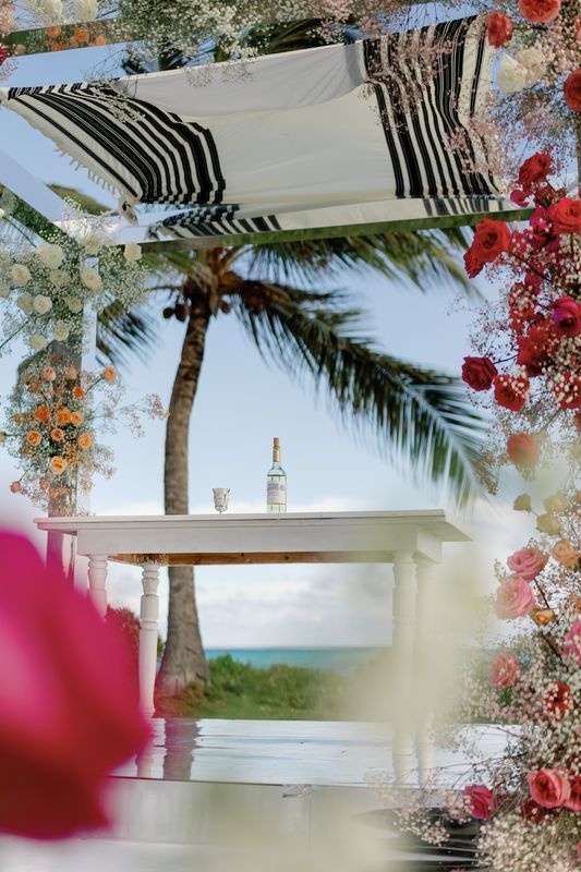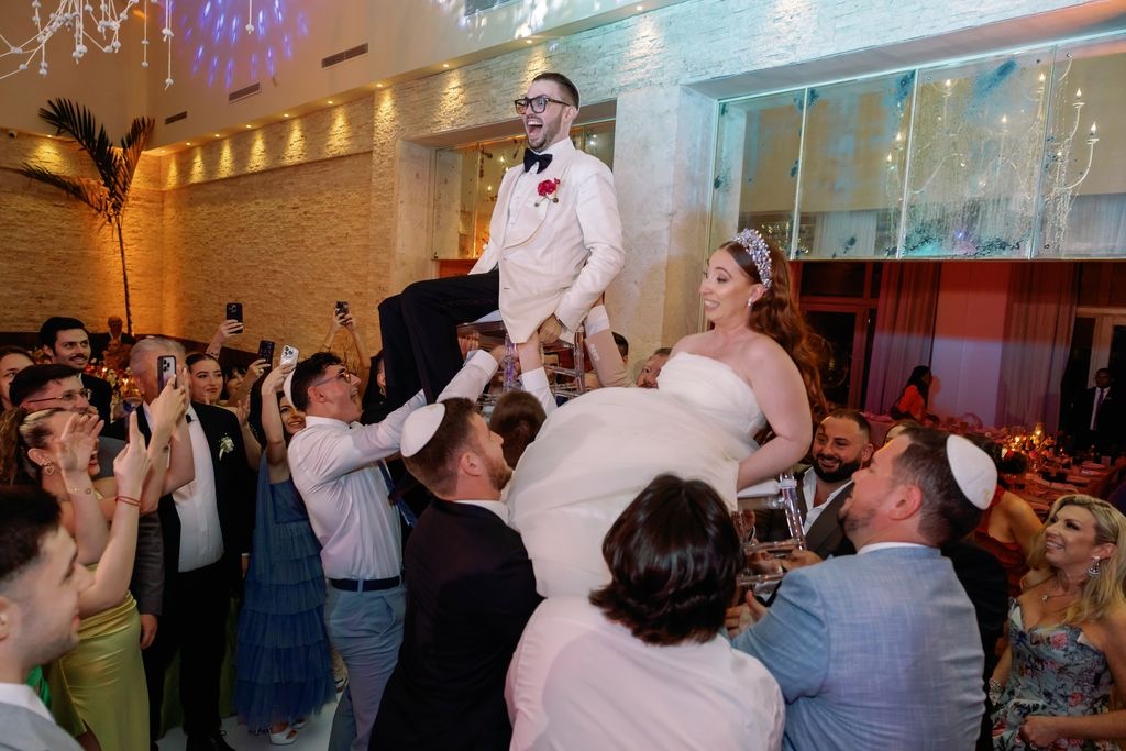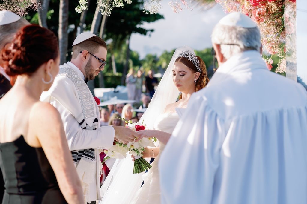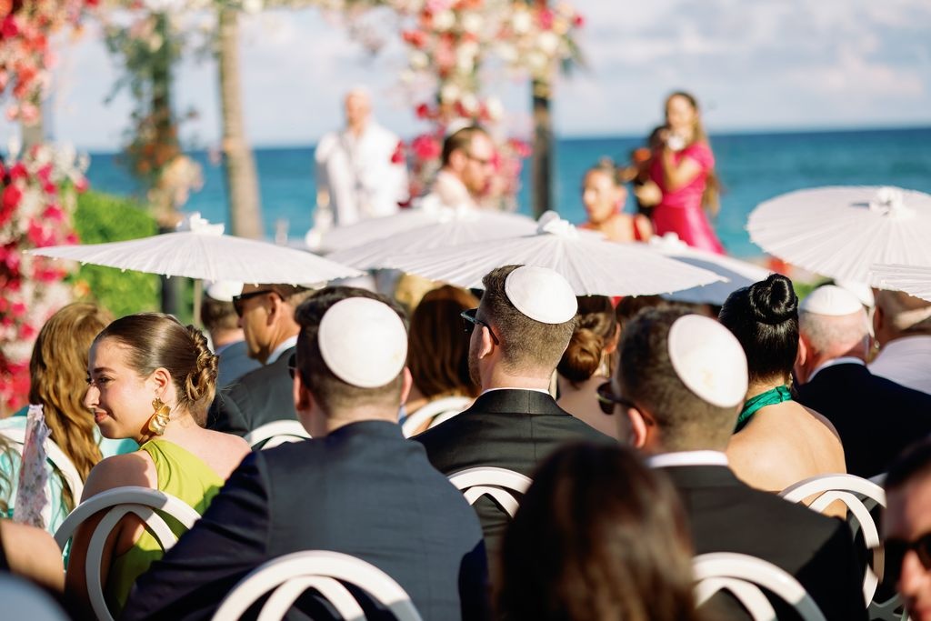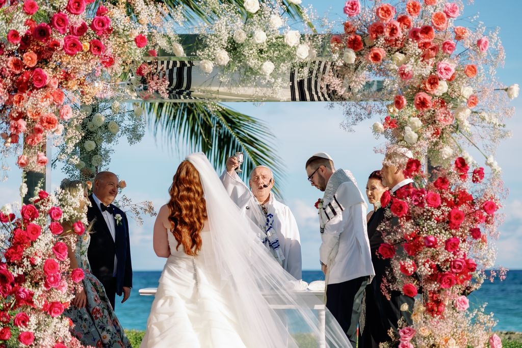 Die jüdische Hochzeitszeremonie fand unter einer wunderschön geschmückten Chuppa mit Blick auf das Karibische Meer statt. Während die Sonne unterging und den Himmel in warme Farben tauchte, tauschten die beiden ihre Gelübde aus – umgeben von Familie und Freunden. Die Kombination aus traditionellen Ritualen und der tropischen Atmosphäre schuf eine zeitlose und herzliche Feier.