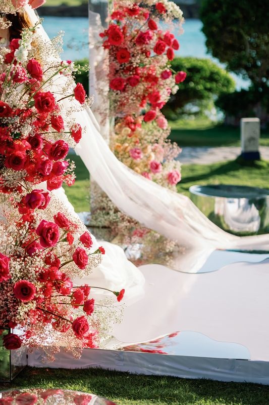Als das Paar seine Liebe mit einem Kuss besiegelte, erhellten bunte Feuerwerke den Himmel. Sie spiegelten sich im Meer und verwandelten diesen Moment in ein wahrhaft magisches Erlebnis.