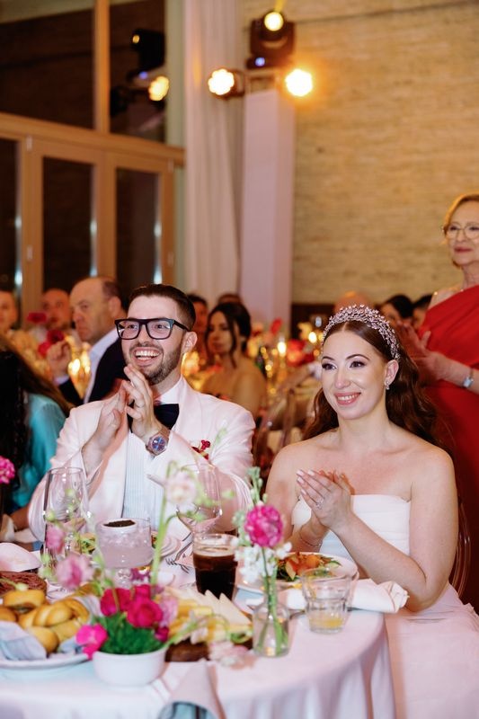 Die Feierlichkeiten begannen mit einem Willkommensdinner. Die Gäste wurden mit einer warmen Atmosphäre, köstlicher Küche und eleganter Dekoration empfangen. Der Abend beinhaltete auch die Unterzeichnung der Ketubbah, einer emotionalen und heiligen jüdischen Tradition, die den offiziellen Beginn der Verbindung des Paares markierte.