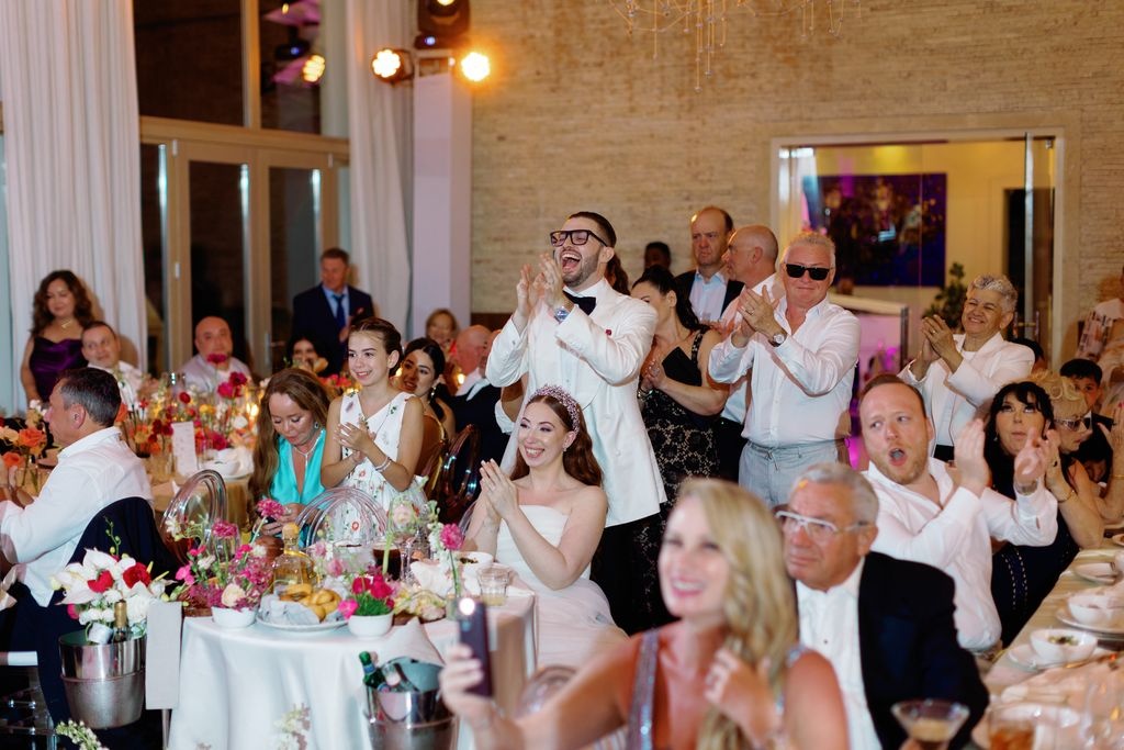 Die Hauptfeier fand am zweiten Tag statt. Unter einem wunderschön geschmückten Chuppah tauschte das Paar in einer herzlichen jüdischen Zeremonie seine Gelübde. Jedes Detail – vom Blumendesign bis zum Ablauf der Zeremonie – wurde in enger Zusammenarbeit mit der Mutter des Bräutigams, Svetlana, gestaltet.
