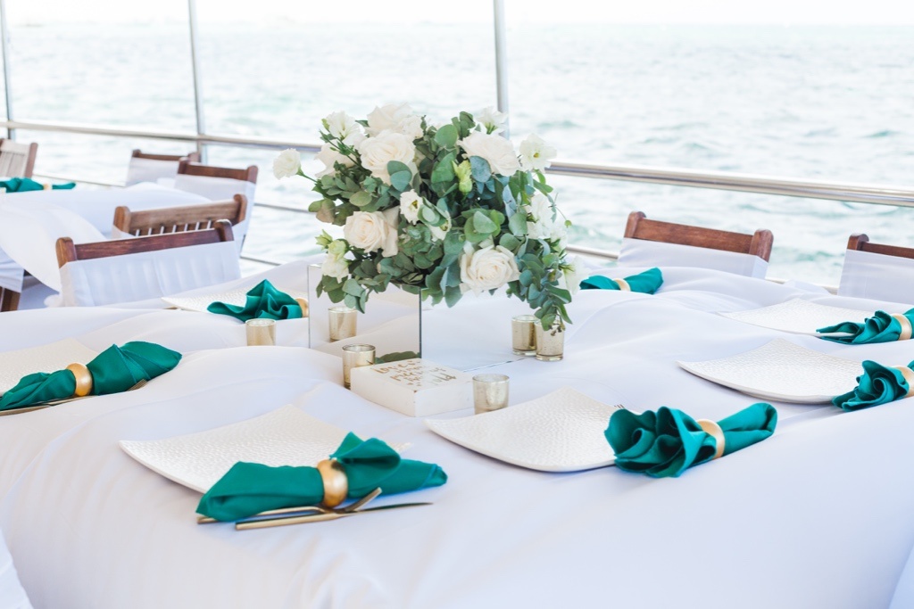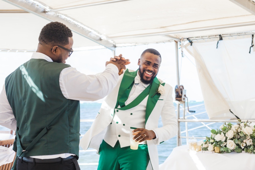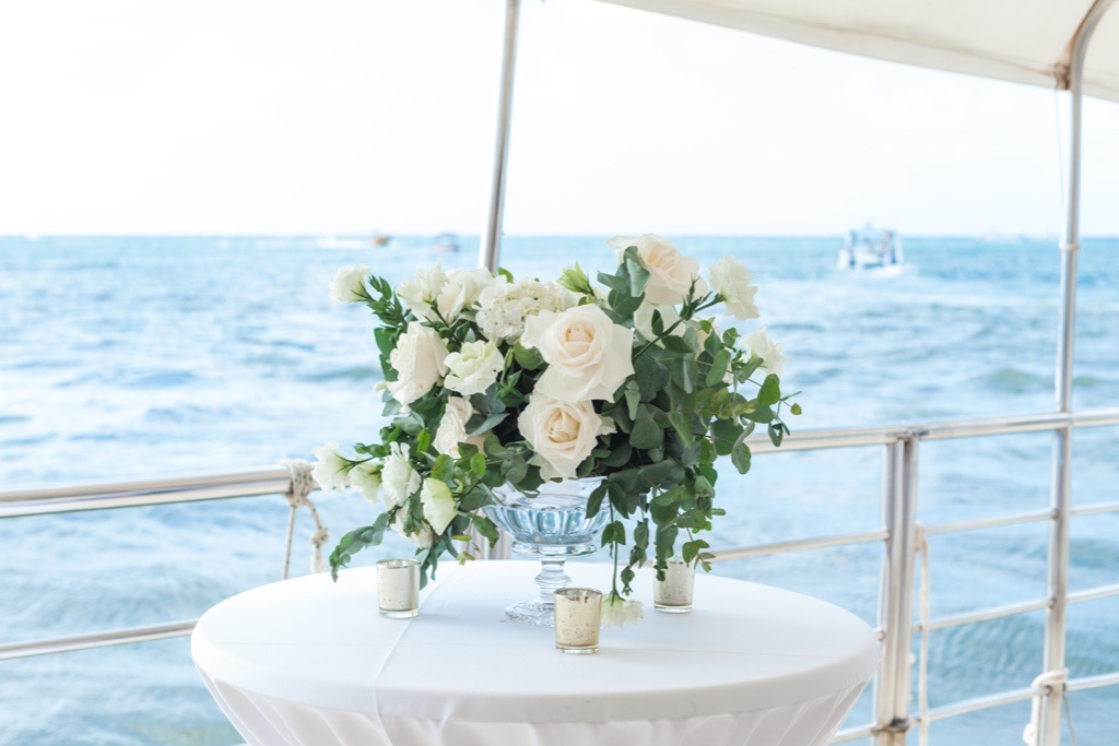 Das Getting Ready der Braut fand in einer privaten Villa statt, anschließend erfolgte die offizielle Hochzeitszeremonie an einem privaten Strand, und danach gingen die Gäste, um die Hochzeit auf einem Boot zu feiern. Unsere Hochzeitspakete auf dem Boot beinhalten eine 3-stündige Fahrt, ein Hochzeitsmenü und eine unbegrenzte offene Bar. Wir bieten außerdem zusätzliche Dienstleistungen für den Empfang an – darunter einen DJ, Künstler, Foto- und Videoservices. Schreiben Sie uns noch heute, um Ihren unvergesslichen Hochzeitstag in der Dominikanischen Republik zu buchen.