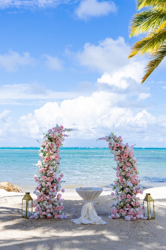 Erheben Sie Ihre Hochzeit mit exquisiten Seidenblumenbögen in Punta Cana, Dominikanische Republik