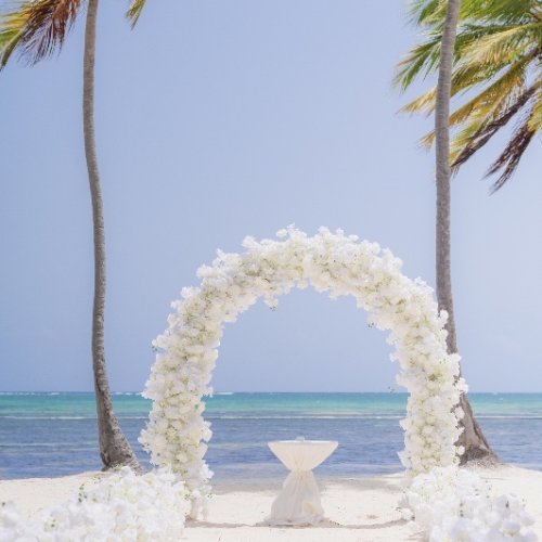 Bereit, Ihre Hochzeit mit unseren exklusiven Seidenblumenbögen zu bereichern? Kontaktieren Sie uns noch heute, um Ihre Vorstellungen zu besprechen und unsere Kollektion zu entdecken. Lassen Sie Caribbean Wedding & Events Agency Ihnen helfen, die Hochzeit Ihrer Träume in der wunderschönen Dominikanischen Republik zu gestalten!