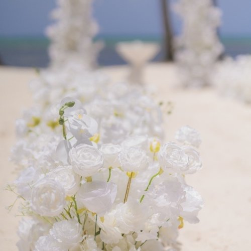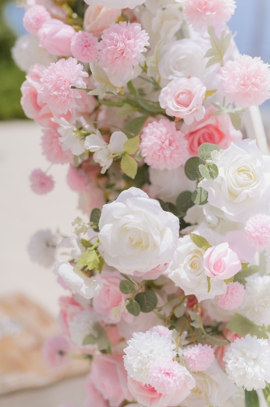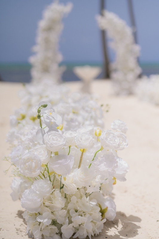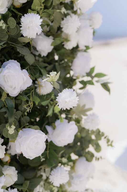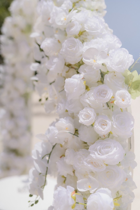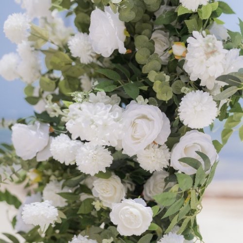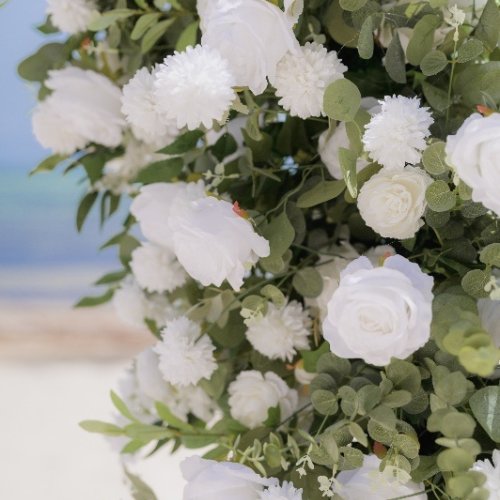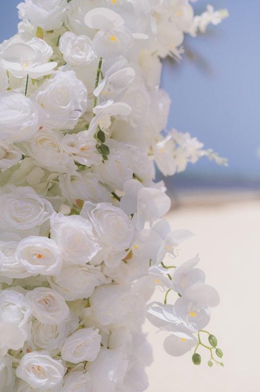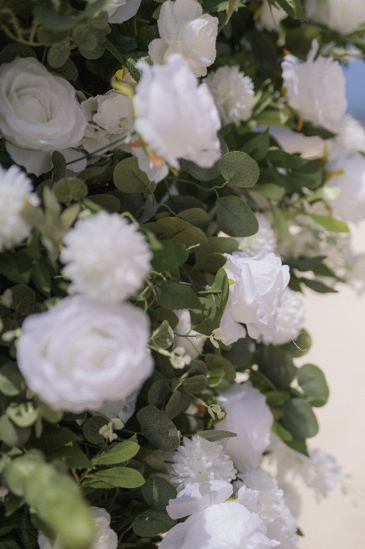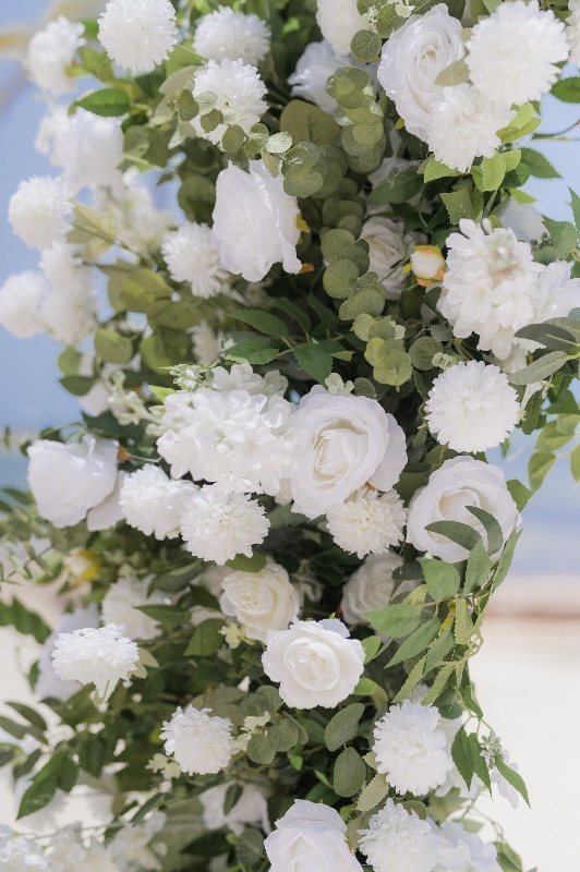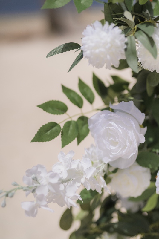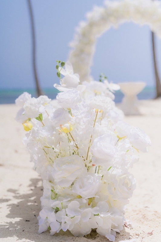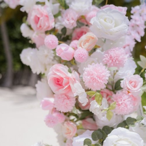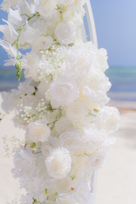 - Langlebigkeit: Seidenblumen halten dem tropischen Klima hervorragend stand. Sie welken nicht in der Hitze und verblassen nicht in der Sonne. So bleibt Ihr Bogen von der Zeremonie bis zum Empfang perfekt.