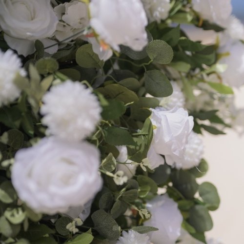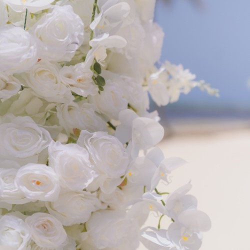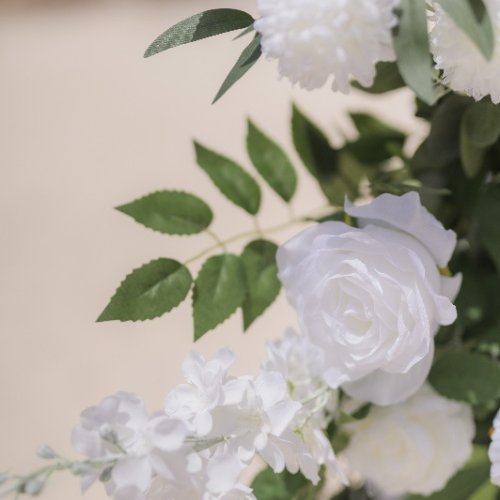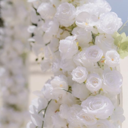 - Klassische weiße Bögen: Zeitlos und elegant – unsere weißen Seidenblumenbögen schaffen eine romantische und ruhige Atmosphäre. In verschiedenen Stilen erhältlich – von schlicht und minimalistisch bis üppig und voller Volumen – können sie mit grünen Akzenten für zusätzliche Struktur ergänzt werden.