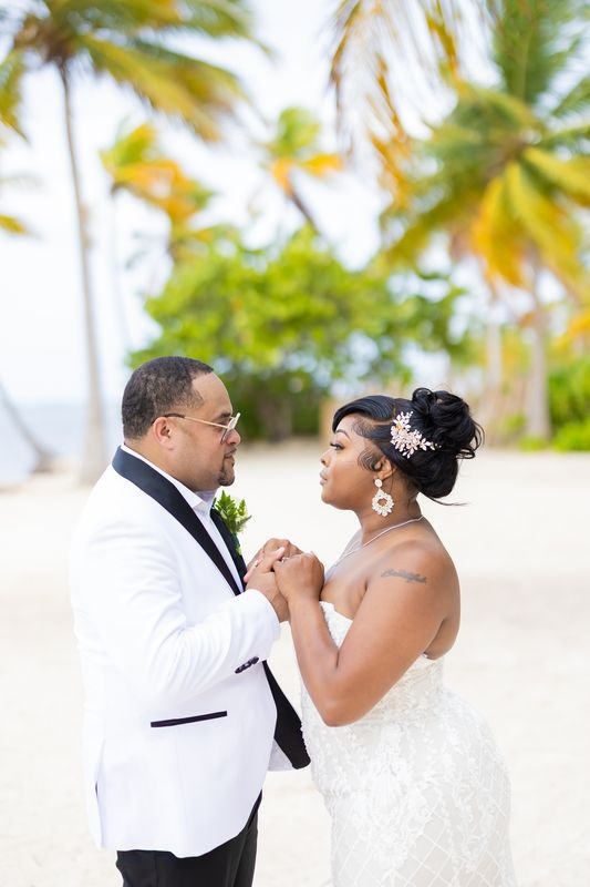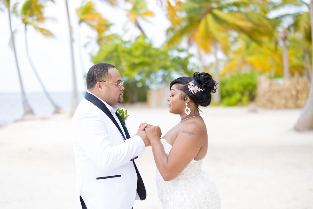 Mit Herzen voller Freude teilten Shenita und Kahlil einen kleinen Tanz auf dem weichen Sand.