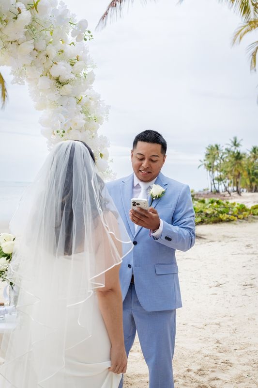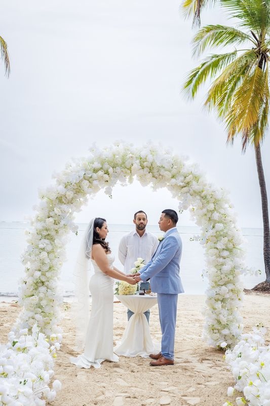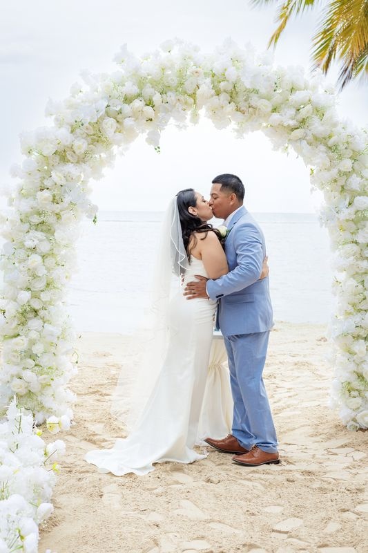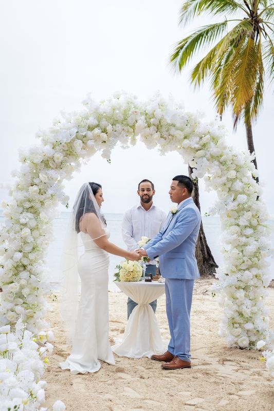 Die wunderschöne Elopement-Hochzeit von Yolin und Pedro an einem privaten Strand war ein intimes, freudiges und liebevolles Ereignis. Umgeben von Familie und Freunden feierten sie ihren besonderen Tag mit dem Klang des Meeres und der warmen karibischen Brise. Der weiche Sand und das türkisfarbene Meer schufen die perfekte Kulisse für diesen unvergesslichen Moment.