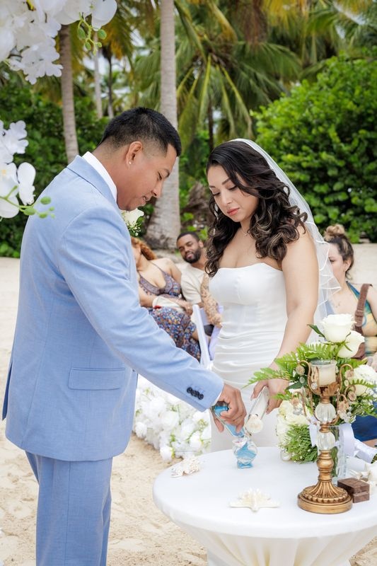 Die Zeremonie umfasste berührende Gelübde, den Austausch der Ringe und die symbolische Sandzeremonie. Jede Geste stand für Einheit, Vertrauen und ewige Liebe. Als Yolin und Pedro ihre Gelübde mit einem Kuss besiegelten, lag spürbare Emotion in der Luft. Familie und Freunde applaudierten freudig und feierten den Beginn ihres neuen gemeinsamen Lebens.